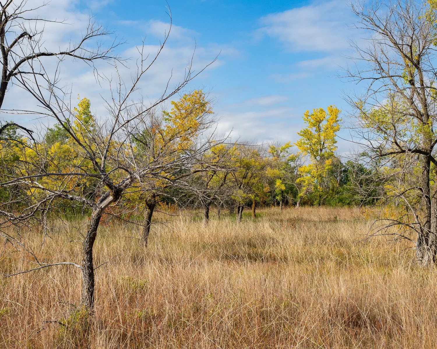 On a bright morning I decided to take a walk in Little Mountain Park, an off-leash dog park in north west Winnipeg. It’s a beautiful park, but somehow I botched my attempts at catching the colour in a meaningful way. This tree was on full glorious display, but the park is surrounded by light industry, which I kept trying to obscure. However, I finally decided to embrace it, since it seemed like the tree itself knows where its friends are: