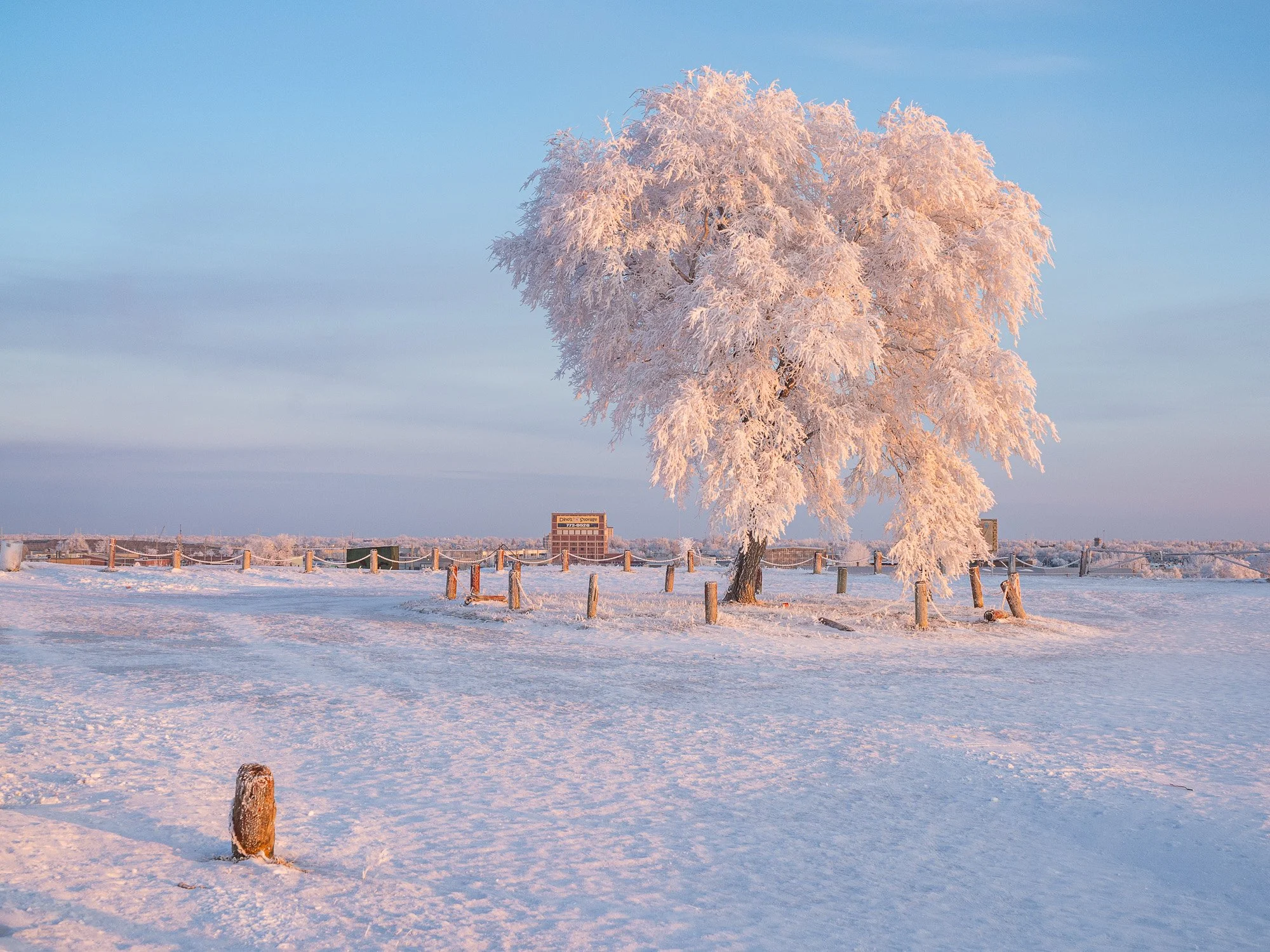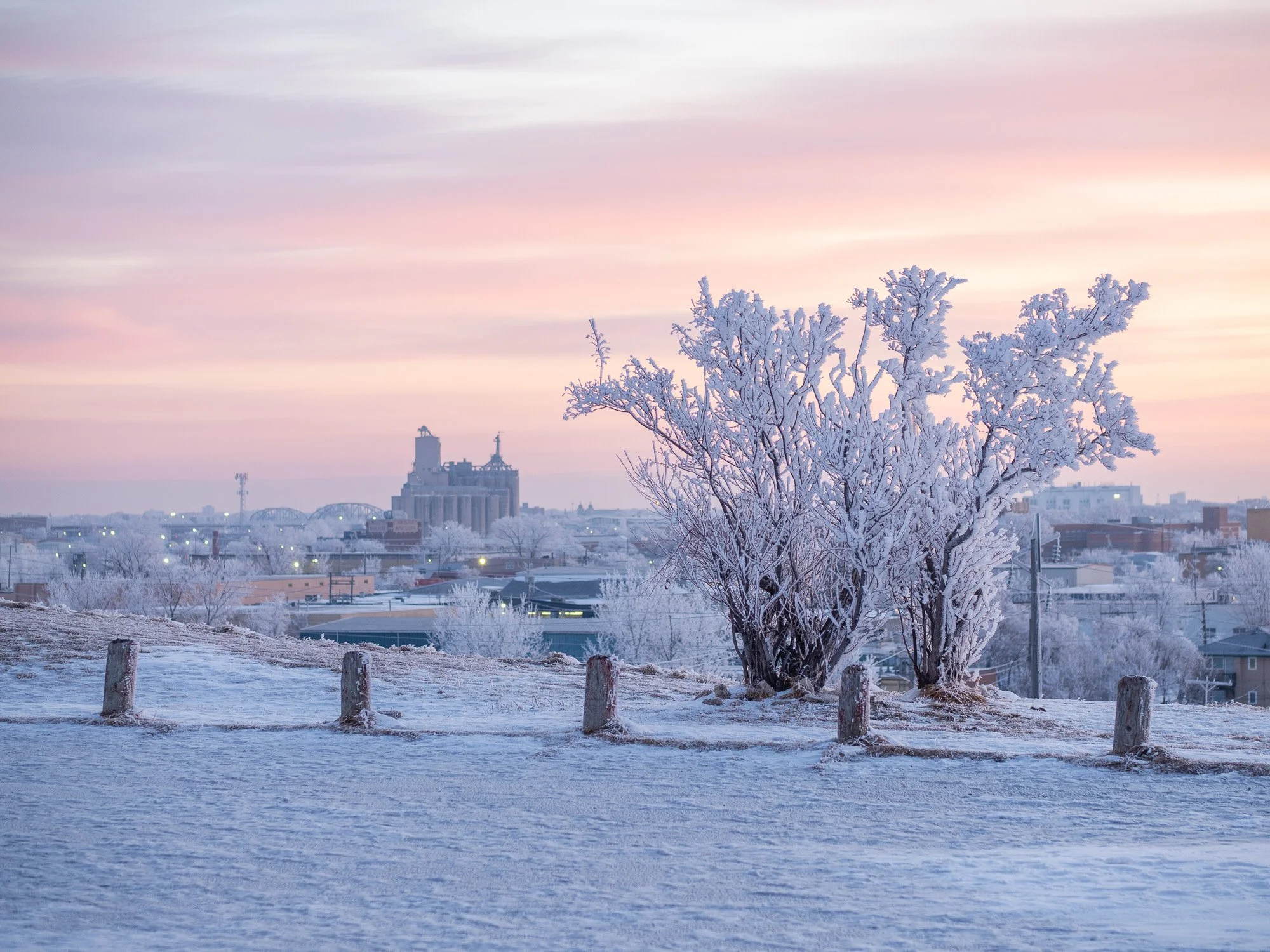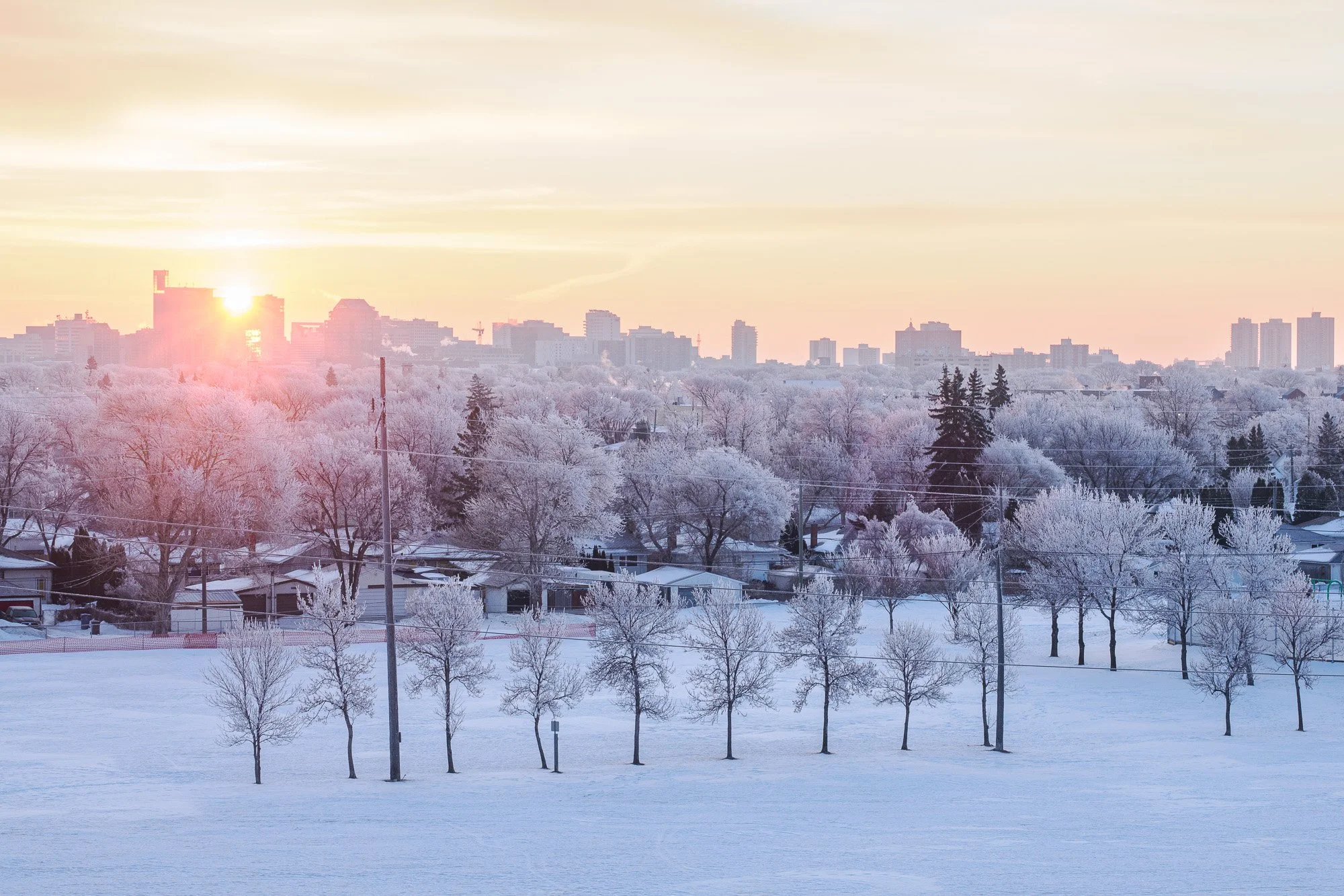 The entire city covered in frost makes for a colourful, and hopeful, sunrise: