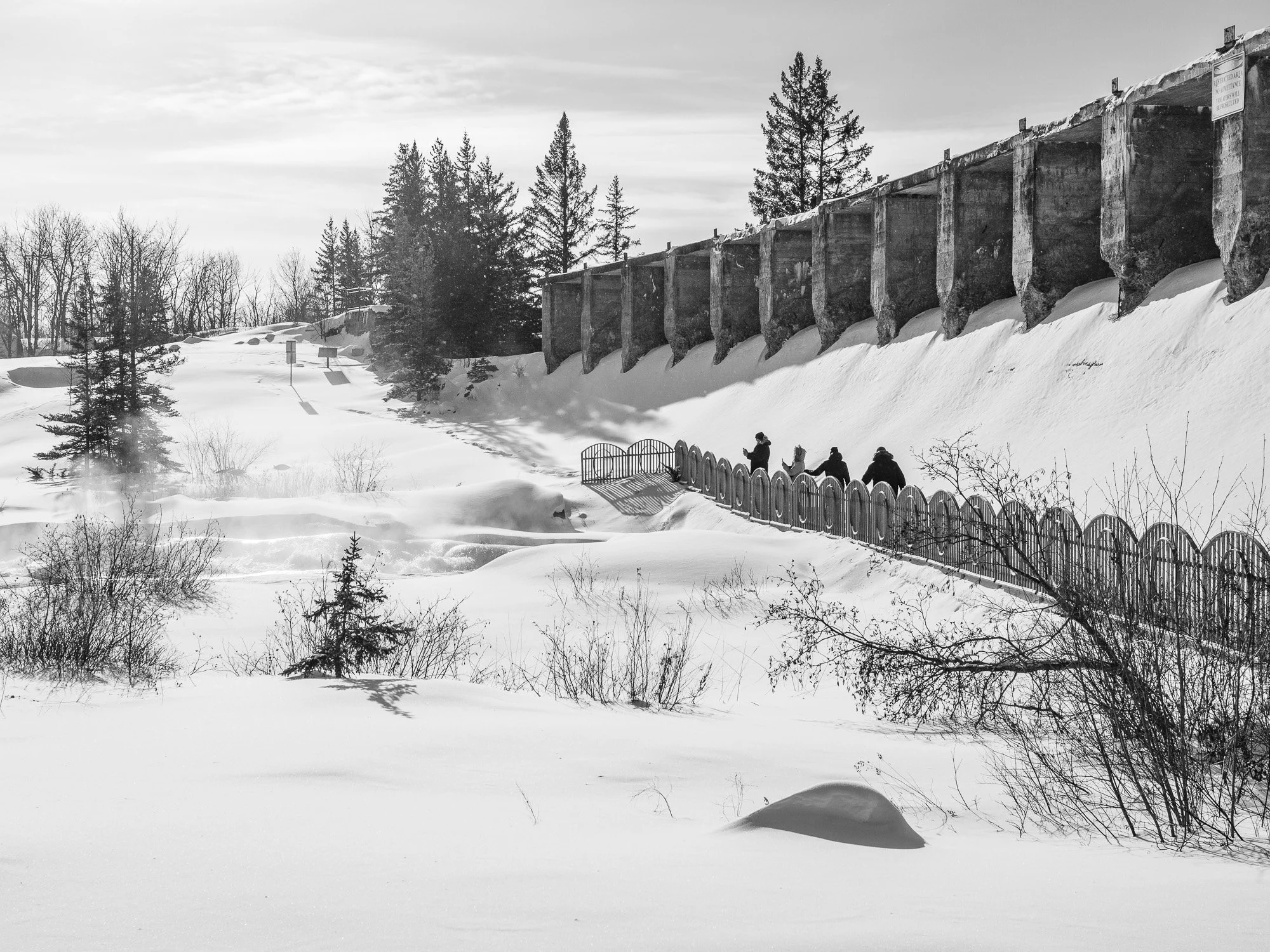 Each winter my siblings and SO-blings rent a cabin, hoping to ski and enjoy good company and food. Not much skiing this time, as it was our coldest trip yet, with highs around -25C, which we still braved to visit Pinawa Dam. You can see the steam from the river as it gushes up from under the dam ruins:
